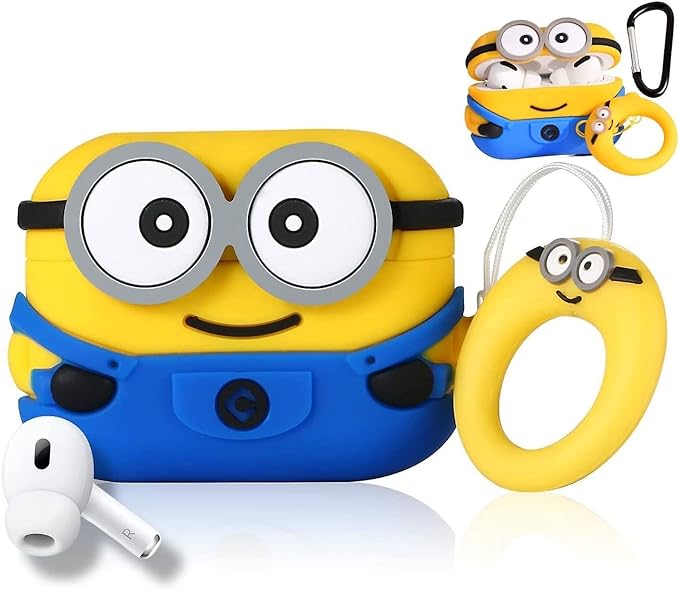 Minion AirPods Pro 2 Case with Keychain, Drop Protection, Protective Case, Supports Wireless Charging Cover for AirPods Pro